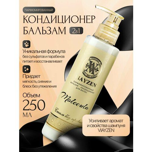 Кондиционер-бальзам ополаскиватель парфюмированный Molecula для волос бренда Viayzen ки – это второй этап ухода за волосами. Косметическое средство с маслами облегчает расчесывание, делая волосы гладкими и послушными. Кондиционер для волос professional подходит для всех типов волос как для сухих и ломких, так и для жирных и поврежденных. Закрывает чешуйки волоса после мытья, укрепляет структуру волоса и предотвращает появление секущихся кончиков. Особенно это необходимо для окрашенных, мелированных и осветленных волос, которые подвергаются воздействию красящих пигментов. Полюбят данную косметику для волос и блондинки, так как волосы блонд нуждаются в особых уходовых средствах. Благодаря большому объему профессиональный бальзам 250 мл можно использовать всей семьей. Подходит для ежедневного применения. Активные компоненты обеспечивают восстановление, укрепление и увлажнение волос, поддержание гидролипидного баланса и защиту от воздействия окружающей среды. Бальзам для волос подходит для прямых, кудрявых и вьющихся волос. Профессиональная косметика - это желанный подарок на 8 марта.