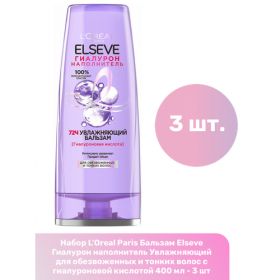 НАЙТИ ВЫГОДНЕЕ - L'Oreal Paris Бальзам Elseve Гиалурон наполнитель Увлажняющий для обезвоженных и тонких волос с гиалуроновой кислотой 400 мл - 3 шт