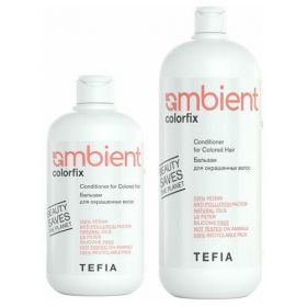 Бальзам для окрашенных волос, Conditioner for Color Hair Ambient Tefia - для бережного и мягкого ухода за окрашенными волосами. Сохраняет яркость цвета окрашенных волос, предотвращает его преждевременное вымывание. Разглаживает и распутывает волосы, облегчает расчесывание. Комплекс ANTI-POLLUTION фактора и УФ-фильтра обеспечивают защиту волос от негативного воздействия окружающей среды.