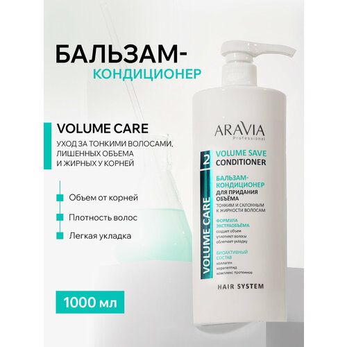 НАЙТИ ВЫГОДНЕЕ - ARAVIA Бальзам-кондиционер Volume Save Conditioner для придания объема тонким и склонным к жирности волосам 1000 мл 1 шт. с дозатором