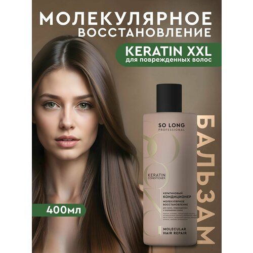 Профессиональный кератиновый бальзам для волос объемом 400 мл от бренда SO LONG PROFESSIONAL — идеальное решение для ухода за сухими, поврежденными и окрашенными волосами. Кондиционер с кератином обеспечивает глубокое восстановление и уход, придавая волосам гладкость, мягкость и блеск. \nС помощью гидролизованного кератина, он проникает в структуру волос, заполняя поврежденные участки и «запечатывая» секущиеся кончики. Это предотвращает ломкость и удерживает влагу, улучшая текстуру волос и делая их прочными и крепкими.\nЗапатентованный восстанавливающий комплекс ReparAge с Амино-Структурным Матриксом восстанавливает микро- и макроповреждения, повышая прочность и упругость волос. Инновационный комплекс BADD восстанавливает дисульфидные связи, а коллаген обеспечивает гладкость и шелковистость.\nГиалуроновая кислота наполняет волосы влагой и придает объем, в то время как натуральные масла кокоса, конопли, виноградной косточки и макадамии глубоко питают и укрепляют волосы. Аминокислотный комплекс восстанавливает жизненную силу волос, повышая их плотность.\nИдеален как для мужчин, так и для женщин — наш кондиционер от Со Лонг станет незаменимым ополаскивателем в вашей уходовой косметике для головы. Подарите своим волосам профессиональный уход с кератином и ощутите разницу нанесите кондиционер на предварительно вымытые шампунем влажные волосы, распределите по всей длине, оставьте на 2 минуты, смойте водой. Для достижения максимального эффекта используйте в комплексе с шампунем и кремом-спреем для волос серии SO LONG PROFESSIONAL.\n