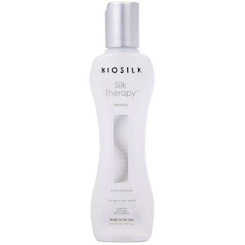 Гель-шелк для волос восстанавливающий Biosilk Silk Therapy Original 167 мл BSST5 - несмываемый увлажняющий уход для волос Шелковая Терапия. Действие и особенности: Обеспечивает восстановление структуры волос, делая их сильными, эластичными, послушными и блестящими. Гарантирует непревзойденное увлажнение. Полностью впитывается, не утяжеляя волос. Защищает волосы от вредного воздействия окружающей среды. Предохраняет волосы от повреждения во время горячей укладки. Фруктовые аминокислоты восстанавливают и укрепляют волосы, придают им эластичность и силу и легкость. Предотвращает потемнение волос, мягко ухаживает за кожей головы. Способ применения: Небольшое количество средства нанести на влажные или сухие волосы, не смывать.