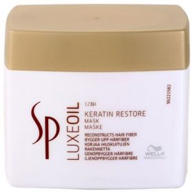 Маска для восстановления кератина волос Wella Professional System Professional SP Luxe Oil Keratin Restore Mask – это профессиональное средство, способное в кратчайшие сроки вернуть волосам утраченную красоту и силу. Ее активное действие основано на высоком содержании кератина, который позволяет восстановит разрушенную структуру волос, сделать их гладкими, блестящими и послушными. Маска Wella Professional System Professional SP Luxe Oil Keratin Restore Mask оказывает на волосы глубокое восстанавливающее воздействие. Кератин проникает глубоко в поврежденную структуру локонов и выравнивает и восстанавливает ее изнутри. Волосы наполняются брильянтовым блеском, эластичностью и невероятной шелковистостью. Комплекс на основе ценных масел арганы, жожоба и миндаля обеспечивает волосам полноценное питание и поддержку. Локоны становятся более блестящими, мягкими и ухоженными. Исчезает сухость и ломкость кончиков, волосы легче перенося ежедневную укладку и химические процедуры. Регулярное использование средства позволит навсегда забыть о непослушных, жестких, сухих и лишенных блеска волосах. С маской Wella Professional System Professional SP Luxe Oil Keratin Restore Mask локоны наполнятся силой, жизненной энергией, приобретут блеск и мягкость.