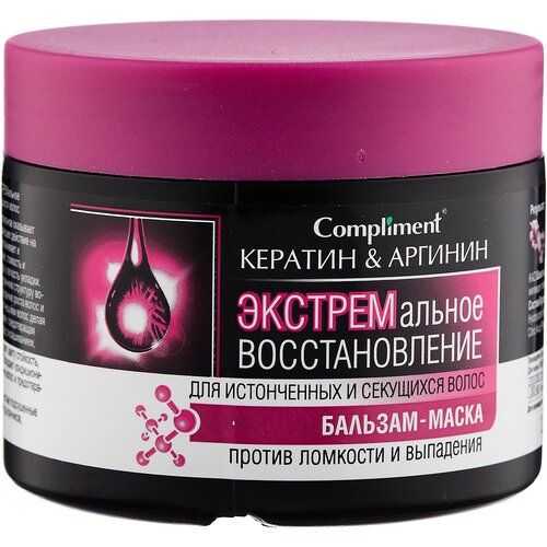 НАЙТИ ВЫГОДНЕЕ - Compliment Кератин & Аргинин Бальзам-маска экстремальное восстановление для истонченных и секущихся волос, 344 г, 300 мл, банка