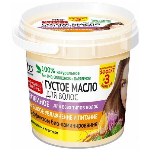 НАЙТИ ВЫГОДНЕЕ - Fito косметик Густое масло для волос Народные Рецепты репейное, 155 г, 155 мл, банка