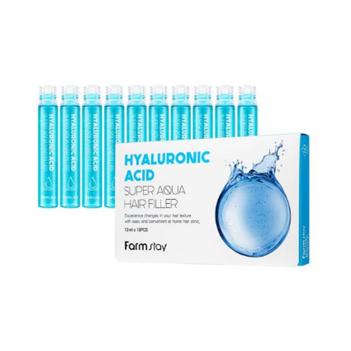 НАЙТИ ВЫГОДНЕЕ - Farmstay Суперувлажняющий филлер для волос с гиалуроновой кислотой Hyaluronic Acid Super Aqua Hair Filler, 160 г, 13 мл, 10 шт., ампулы