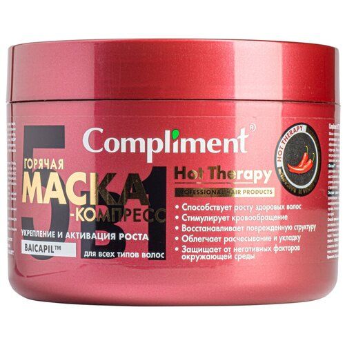 НАЙТИ ВЫГОДНЕЕ - Compliment Hot Therapy Горячая маска-компресс Укрепление и активация роста для всех типов волос, 500 мл, банка