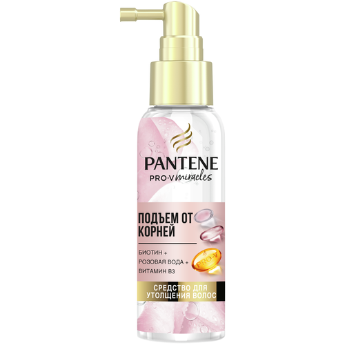 Спрей для утолщения волос PANTENE Miracles Подъем от корней для прикорневого объема 100 мл. PANTENE (Пантин) Miracles — это высокопитательная формула для волос, которые нуждаются в чуде. Спрей Pantene Miracles Подъем от корней — уникальное средство для объема и густоты волос с биотином, витамином В3 и розовой водой, созданное специально для тонких или редеющих волос. Его питательная формула помогает увеличить объем каждого волоса, утолщая его и создавая "каркас", удерживающий увлажняющие и укрепляющие компоненты на его поверхности. Средство для утолщения волос действует на поверхности каждого волоска, создавая визуальный эффект увеличения объема и густоты на 6500 волосков. Для достижения максимального эффекта используйте в сочетании с шампунем, бальзамом-ополаскивателем, маской для волос и маслом 7 в 1 из серии Объем от корней до кончиков. Формула протестирована специалистами Швейцарского Института Витаминов (Swiss Vitamin Institute).