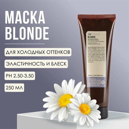 Маска для поддержания холодных оттенков Insight Professional BLONDE, 250 мл - это профессиональное средство для ухода за волосами, которое обеспечивает глубокое питание и восстановление структуры волос.