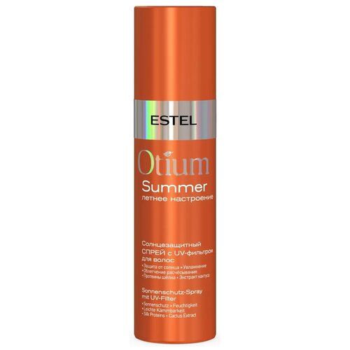 Описание\nсвойства\nотзывы\nдоставка И оплата\nOTIUM SUMMER Солнцезащитный спрей с UV-фильтром для волос, 200 мл - защищает волосы от выгорания и потери влаги. Экстракт кактуса в составе спрея увлажняет и поддерживает гидробаланс. Комплекс протеинов шёлка кондиционирует, облегчает расчёсывание и придаёт гладкость.\nЭкстракт кактуса\nПротеины шёлка