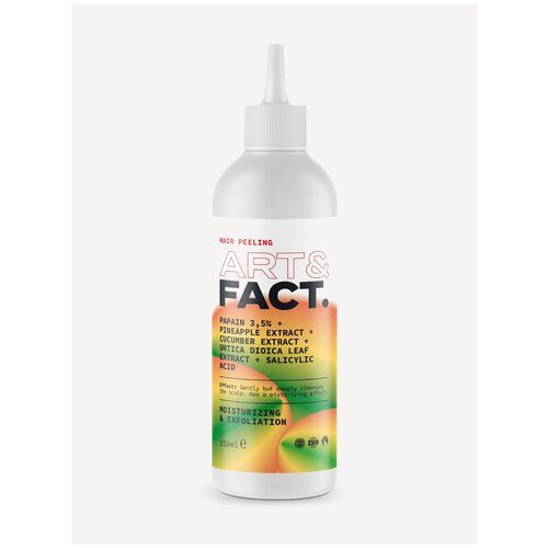 НАЙТИ ВЫГОДНЕЕ - ART&FACT. Очищающий и увлажняющий энзимный пилинг для кожи головы и волос с папаином и экстрактами ананаса, огурца, крапивы, и салициловой кислотой, 200 г, 150 мл, флакон с пипеткой