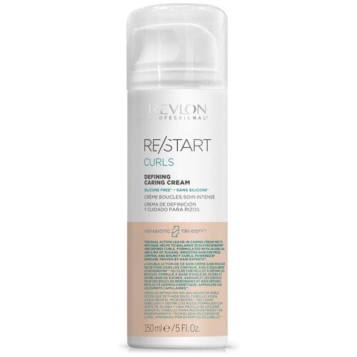 RE/START CURLS, DEFINING CARING CREAM несмываемый ухаживающий крем двойного действия впитывается в волосы, помогает сбалансировать микробиом кожи головы, и формирует локоны. Созданный на основе масла жожоба и смеси определяющих сахаров, несмываемый крем для придания формы локонам разглаживает волосы, контролируя пушистость и делая кудри упругими.