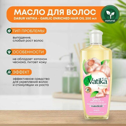 Масло с экстрактом чеснока рекомендуется использовать при лечении облысения, для стимуляции роста волос и предотвращения их выпадения. Это масло очищает поры кожи, запускает процессы регенерации волос и активизирует приток крови в кожу головы. Применение масла Dabur Vatika Garlic Enriched делает волосы гладкими, шелковистыми и блестящими.