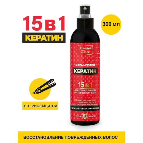 Крем-спрей 15 в1 Золотой шелк «кератин» 300 мл - это многофункциональное средство для ухода за волосами и кожей головы. Продукт разработан специально для всех типов волос, включая осветленные, ломкие, тонкие и поврежденные.