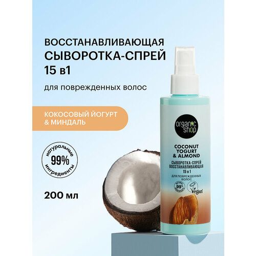 ORGANIC SHOP COCONUT YOGURT&ALMOND сыворотка-спрей для поврежденных волос 15В1 восстанавливающая - Эффективная многофункциональная сыворотка-спрей для волос действует в 15 направлениях: