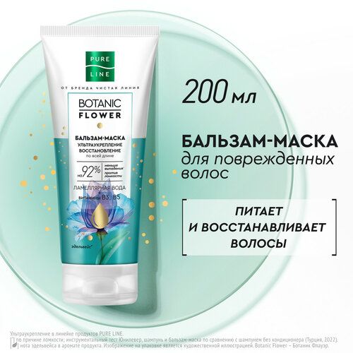 НАЙТИ ВЫГОДНЕЕ - Чистая линия PURE LINE BOTANIC FLOWER бальзам-маска ультраукрепление и восстановление, 200 г, туба