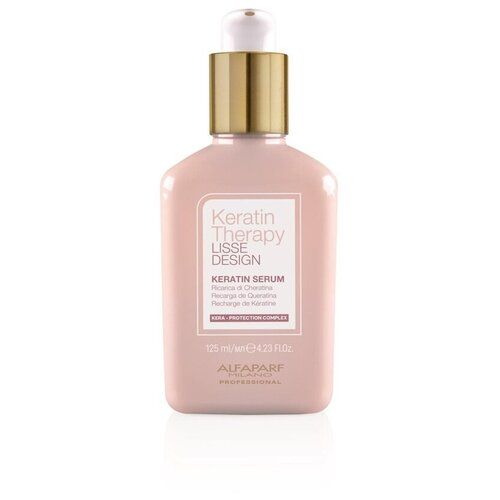 Сыворотка ALFAPARF Lisse Design Keratin Therapy - кератиново-коллагеновый наполнитель, оптимальная термозащита. Продлевает и поддерживает результат и косметический эффект выпрямляющей кератиновой терапии Lisse Design. Наполняет структуру волос комплексом растительного коллагена и кератина, обеспечивает оптимальную термозащиту. Помогает сохранить волосы гладкими, мягкими и легко расчесываемыми. Новый защитный комплекс Kera-Protection с растительным коллагеном и силанизированным кератином в составе восстанавливает поврежденные волосы, повышает их силу, придает мягкость и защищает волосы от горячих устройств для укладки. Силанизированный кератин представляет собой молекулу, состоящую из двух функциональных единиц: один компонент получен из гидролизованного кератина, а другой содержит активируемые нагреванием химические группы. Кератиновые пептидные группы прикрепляются к поврежденным участкам волос. Благодаря теплу выпрямителя или фена химические группы активируются и обеспечивают образование защитной пленки на поверхности волос. Коллаген таймень из акации работает вместе с кератином, усиливая защитный эффект и обеспечивая эффективный косметический уход. Масло бабассу делает волосы мягкими и блестящими. Керазащитный комплекс защищает и восстанавливает силу и устойчивость волос к внешним стрессовым факторам. Bond System работает внутри и снаружи волосяного волокна, восстанавливая химически обработанные волосы, защищая волосы от жары, загрязнений окружающей среды и ультрафиолетового излучения, а также восстанавливая эластичность волос. Без минерального масла и парабенов. нанести на влажные волосы, расчесать, чтобы средство для ухода равномерно распределилось. Высуши волосы