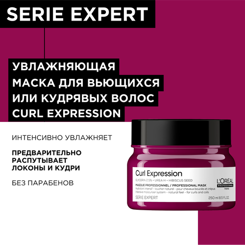 Профессиональная увлажняющая маска L'Oreal Professionnel Serie Expert Curl Expression для всех типов кудрявых волос. Как работает: Профессиональная увлажняющая маска Curl Expression для поддержания естественного эффекта на кудрявых волосах. В 2 раза больше увлажнения. В 2 раза более блестящие волосы. Формула обогащена 2,5% глицерина, Urea H и экстрактом семян гибискуса. Увлажняет и способствует облегчению расчесывания. Волосы более мягкие и воздушные. Текстура маски мгновенно впитывается. Без парабенов.