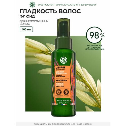 НАЙТИ ВЫГОДНЕЕ - Yves Rocher Флюид гладкость волос с Пептидами Риса - Термозащита до 230° - Для непослушных волос, 100мл