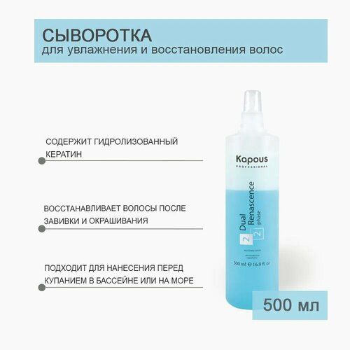 НАЙТИ ВЫГОДНЕЕ - Увлажняющая сыворотка для восстановления волос «Dual Renascence 2 phase» Kapous, 500 мл