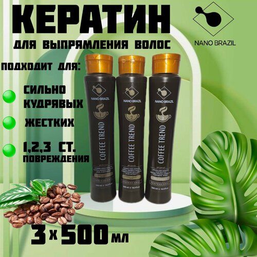 НАЙТИ ВЫГОДНЕЕ - Кератин для выпрямления волос COFFEE TREND набор профессиональный 3х500 мл