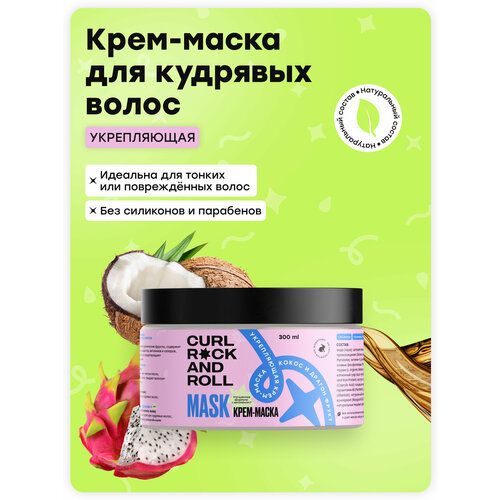 Укрепляющая крем-маска «Кокос и драгон-фрукт» от Curl Rock and Roll разработана для волнистых, кудрявых и суперкудрявых волос