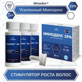 Maderma Minodex 15% в форме лосьона. 3 флакона со штатной пипеткой - ваш запас на 3 месяца. Усиленное косметическое средство эффективно помогает росту волос за счет питания волосяных луковиц и стимуляции подкожного кровотока. Спящие фолликулы из состояния покоя переходят в цикл роста. За счет этого и начинают расти новые волосы. Косметическое средство имеет доказанную эффективность и используется трихологами по всему миру с 80-х годов.