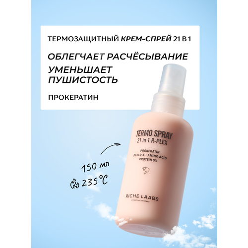 Крем-спрей 21 в 1 от RICHE LAABS (Рише) — это кремовый несмываемый крем для волос с легкой текстурой, который защищает локоны от термоукладки, восстанавливает их и придаёт шелковистость.