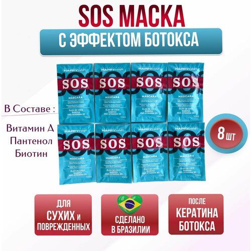 НАЙТИ ВЫГОДНЕЕ - Happy Hair SOS маска-суфле без сульфатов 8 шт х 10 мл профессиональная