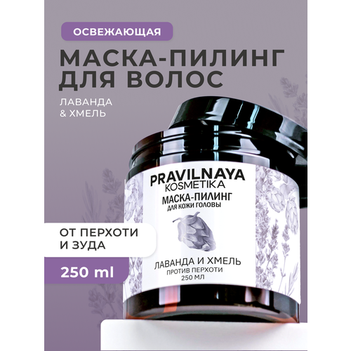 НАЙТИ ВЫГОДНЕЕ - Освежающая маска пилинг Pravilnaya Kosmetika против перхоти, зуда и жирности кожи головы, Лаванда & Хмель, 250 мл