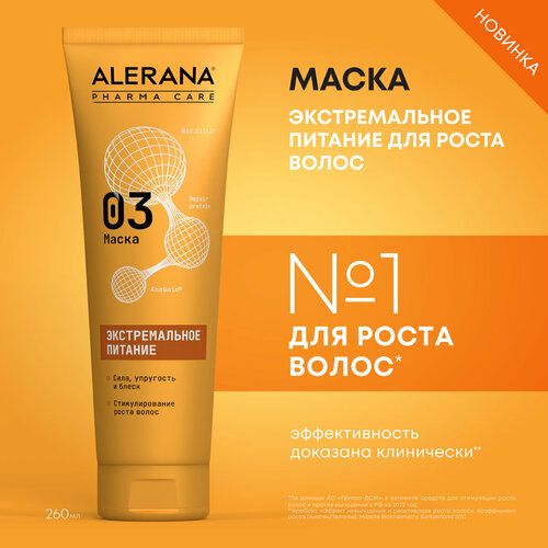 Профессиональная маска "Экстремальное питание" от Алерана предназначена для интенсивного увлажнения и ухода за поврежденными и сухими женскими волосами. Активные питательные компоненты: AnaGain способствует укреплению волосяных луковиц, предотвращает выпадение и активизирует рост на 78%. Repair protein (протеин) обеспечивает восстановление глубоких повреждений и укрепляет пряди от корней по всей длине. Разглаживающие свойства помогают склеить секущиеся кончики, делая их менее подверженными ломкости. Bio Elixir восстанавливающий комплекс из 12 масел питает волосы и кожу головы, защищает от внешних воздействий и придает блеск, гладкость и красоту. Протеиновая косметическая маска облегчает расчесывание, нейтрализует появление электризации и уменьшает пушистость. Увлажняющее средство подходит для женщин с любым типом волос: жирными и пористыми, окрашенными и осветленными, тонкими и ломкими. Специализированная серия уходовой косметики ALERANA базируется на достижениях современной косметологии и фармакологии. Уникальные рецептуры разработаны под контролем трихологов на основе инновационных компонентов с доказанной эффективностью действия.