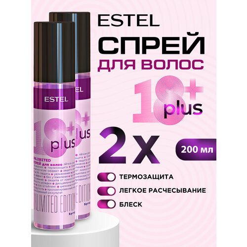 НАЙТИ ВЫГОДНЕЕ - Увлажняющий спрей для легкого расчесывания ESTEL PROFESSIONAL 18+ Plus с термозащитой для волос 200 мл - 2 шт