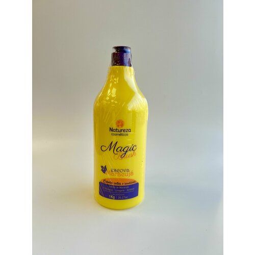 Бразильский кератин MAGIC BRUSH (Escova Maracuja). Кератин с наивысшими питательными свойствами, содержащий в основе главный компонент экстракт маракуйи, который усиливает проникновение питательных элементов, улучшая способность волоса к сохранению влаги, придавая плотность и эластичность.