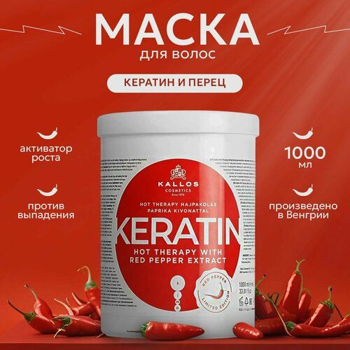 Маска кератин с перцем для роста волос от Kallos Cosmetics. Перцовая маска для волос подходит для всех типов: особенно эффективна для тех, кто сталкивается с проблемой ломкости и выпадения.