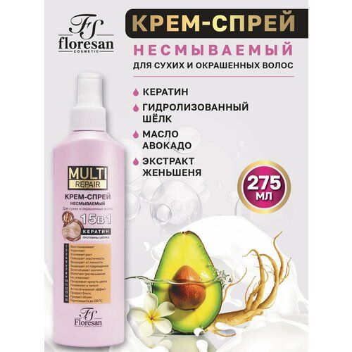 НАЙТИ ВЫГОДНЕЕ - Floresan Крем-спрей для волос несмываемый 15 в 1 кератин MULTI repair 275 мл.