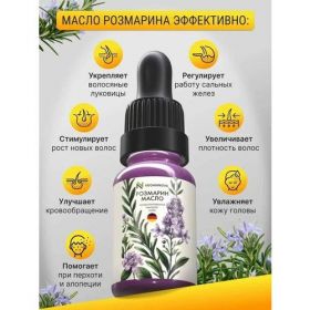 Масло розмарина для ухода за волосами: ваш путь к естественному блеску и здоровью кудрявых локонов. Это натуральное увлажняющее средство обеспечивает несмываемую заботу, восстанавливает секущиеся концы и возвращает природную красоту. А так же это профессиональное средство используют для кожи головы от перхоти и выпадения волос. Специальная формула укрепляет корни, активизирует рост волос и идеально подходит для ежедневного использования благодаря легкой текстуре. Розмариновое масло для волос - идеальный выбор для восстановления окрашенных прядей после термического воздействия, предотвращает ломкость и делает волосы более объемными без лишних усилий. Так же масло розмарина подходит мужчинам для роста и облысения волос и бороды.