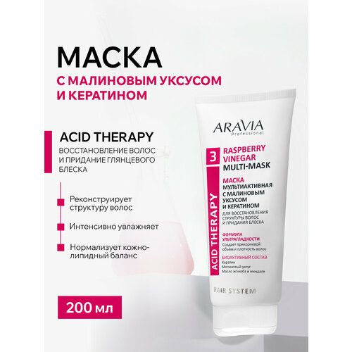 НАЙТИ ВЫГОДНЕЕ - ARAVIA PROFESSIONAL Маска для волос мультиактивная с малиновым уксусом и кератином, 200 мл