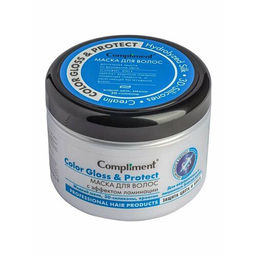 Маска для волос Compliment с эффектом ламинирования COLOR GLOSS & PROTECT объемом 500 мл предназначена для всех типов волос и обеспечивает профессиональный уход в домашних условиях.
