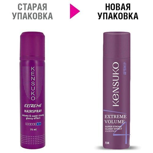 НАЙТИ ВЫГОДНЕЕ - Kensuko Лак для волос Extreme с эффектом блеска, экстрасильная фиксация, 77 г, 75 мл