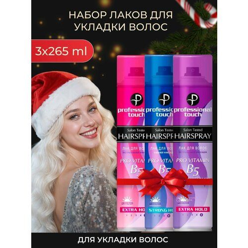 НАЙТИ ВЫГОДНЕЕ - Набор 3шт Лак для волос Professional Touch PRO VITAMIN B5 ультрасильной фиксации и сильной фиксации 3*265 мл