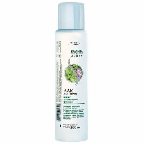 Лак для волос экстрасильной фиксации Крапива и лопух. Укрепляет волосы и защищает их от вредного воздействия окружающей среды. В комплекте 3 шт