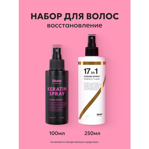 НАЙТИ ВЫГОДНЕЕ - Likato Professional Спрей для идеальных волос 17в1 250 мл + Кератин спрей 100 мл