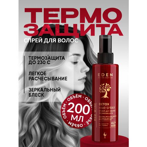 Спрей для волос термозащита EDEN DETOX с экстрактом красного вина 200 мл - это эффективное средство для защиты волос от негативного воздействия высоких температур и других внешних факторов.