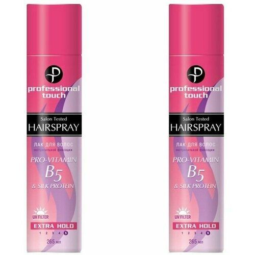 НАЙТИ ВЫГОДНЕЕ - PROFESSIONAL TOUCH Лак для волос Pro vitamin B5 & Silk Protein, Экстрасильная фиксация, 265 мл, 2 шт