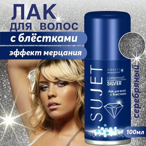 НАЙТИ ВЫГОДНЕЕ - Лак для волос Sujet 100 мл, серебряный с блестками, Эффект мерцания