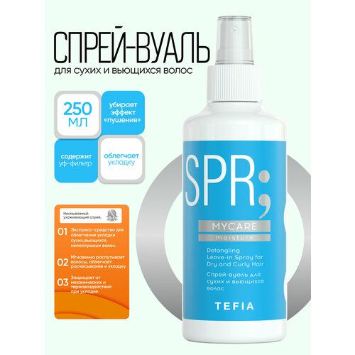 НАЙТИ ВЫГОДНЕЕ - Спрей-вуаль для сухих и вьющихся волос, TEFIA MY CARE для укладки волос, 250 мл, увлажняет