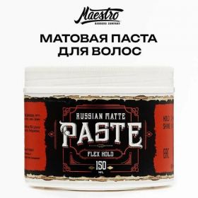 Представляем ультимативный инструмент для укладки Maestro - Matte Paste Этот премиум-продукт обеспечивает естественный матовый эффект для современного и сдержанного стиля. Наша формула обеспечит сильную фиксацию и гарантирует что ваша прическа будет неизменна целый день, в то время как его состав позволяет легко наносить ее и управлять укладкой. Будь то строгий стиль, или более легкий, растрепанный, эта паста идеально подходит для всех типов волос любой длинны. Прощайтесь с обычными укладками и переходите на Maestro - Matte Paste для профессионального и стильного завершения образа.