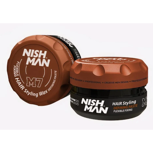 Матовая моделирующая паста для укладки волос NISHMAN Defining Paste M7 средней фиксации идеально завершит укладку, выделив отдельные пряди, или поможет сформировать текстуру на коротких стрижках. Дарит эластичную фиксацию, не оставляя на шевелюре липкого слоя. Используется для защиты прически от повреждений, например, в ветреную или дождливую погоду. Рекомендуется наносить на чуть мокрые или сухие пряди. Подходит для всех типов волос. Не создает эффект жирных волос. Отличный выбор для мужчин активного образа жизни. Укладка остается выглядеть естественно, так, будто волосы сами уложились в прическу при пробуждении.