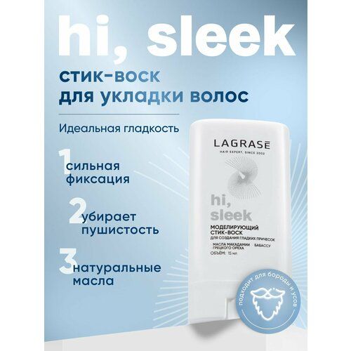 НАЙТИ ВЫГОДНЕЕ - Стик воск для волос с маслом макадамии LAGRASE Hi, sleek моделирующий для создания гладких причесок, 15 мл
