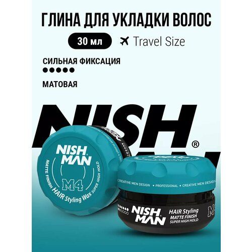 НАЙТИ ВЫГОДНЕЕ - Матовая глина для укладки волос сильная фиксация NISHMAN M4 для мужчин, 30мл